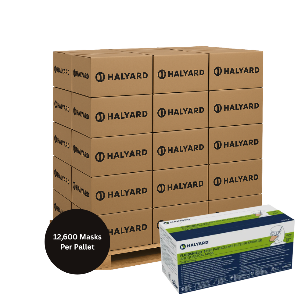 Halyard Fluidshield 46827: N95 Particulate Filter Respirator Mask (Small), Level 3 – Pallet QTY 60 Cartons = 12,600